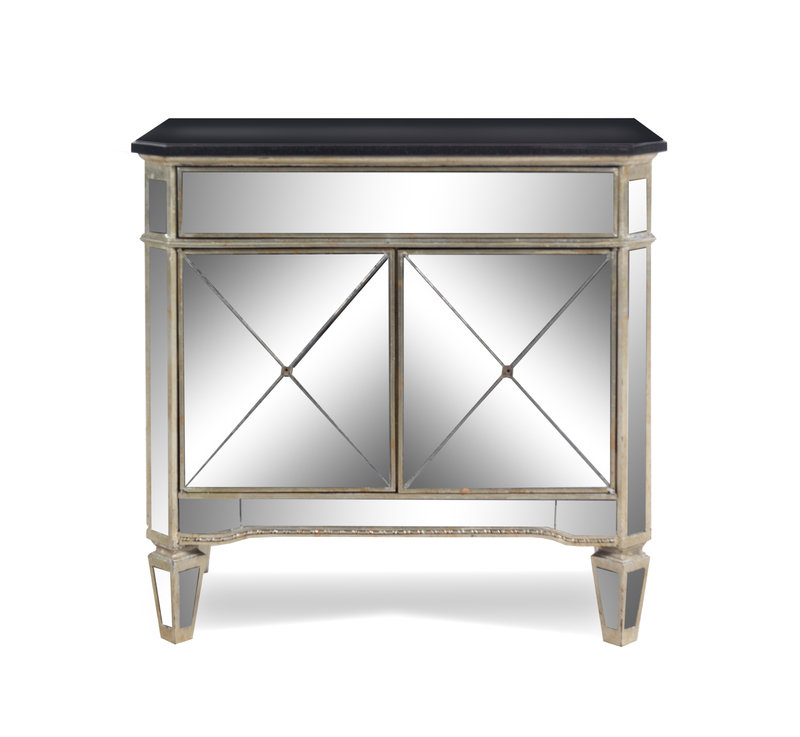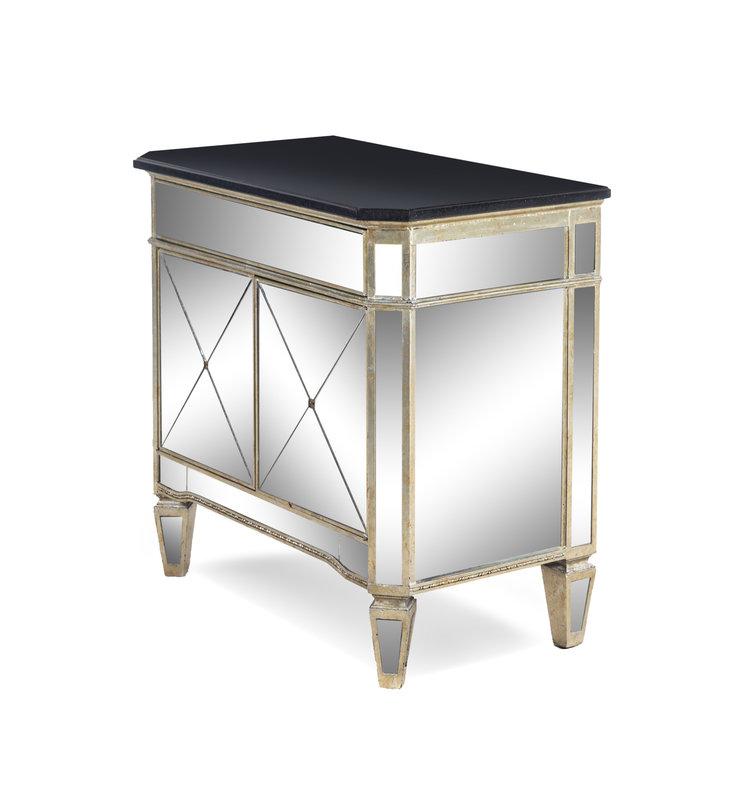 A Contemporary Mirrored Marble-Top Side Cabinet