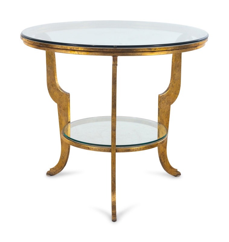 A Contemporary Gilt Metal and Glass Center Table