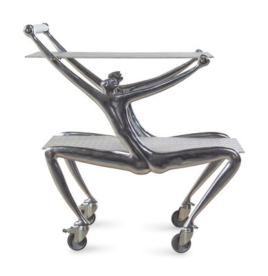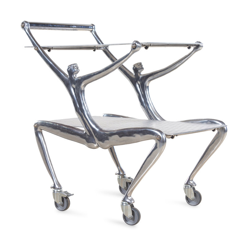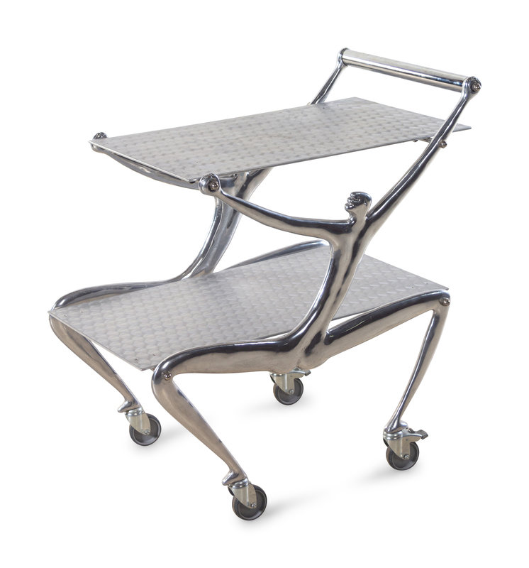 A Carrol Boyes Cast Aluminum Man Drinks Trolley