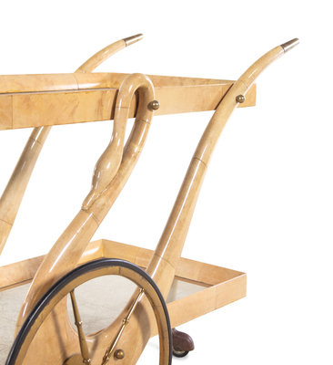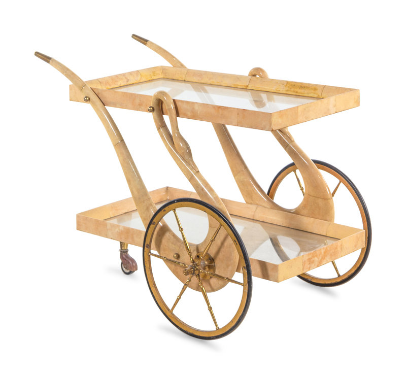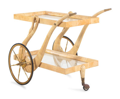 A Parchment Veneered Swan Bar Trolley Attributed to Aldo Tura