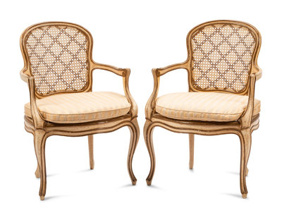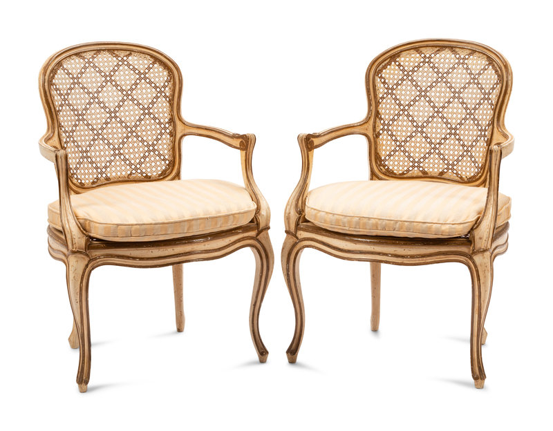 A Pair of Louis XV Style Painted Fauteuils