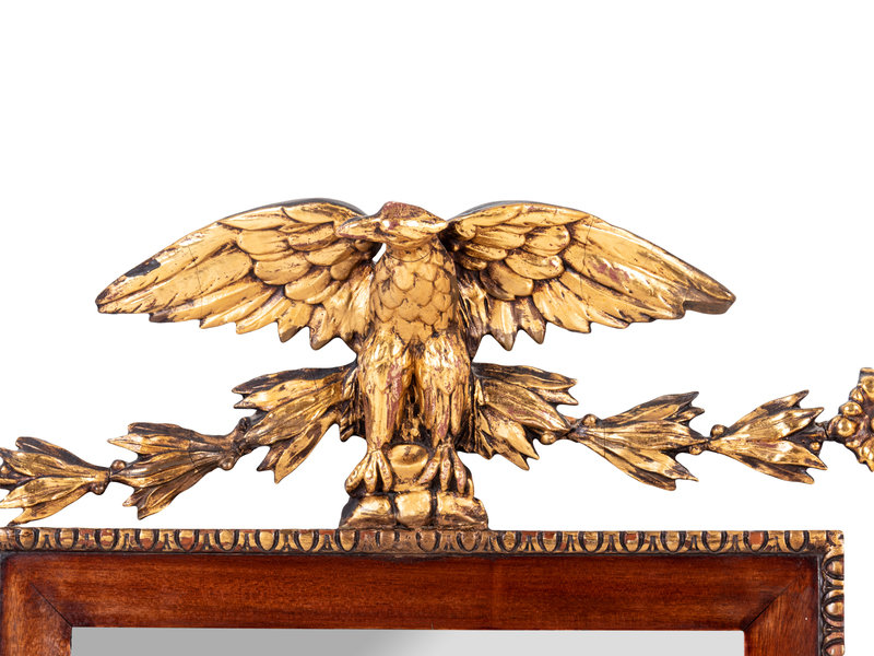 A Federal Style Parcel Gilt Mahogany Eagle-Mounted Looking Glass