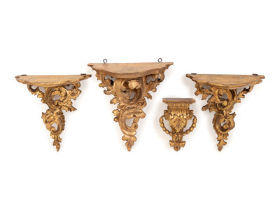 Four Louis XV Style Carved Giltwood Wall Brackets
