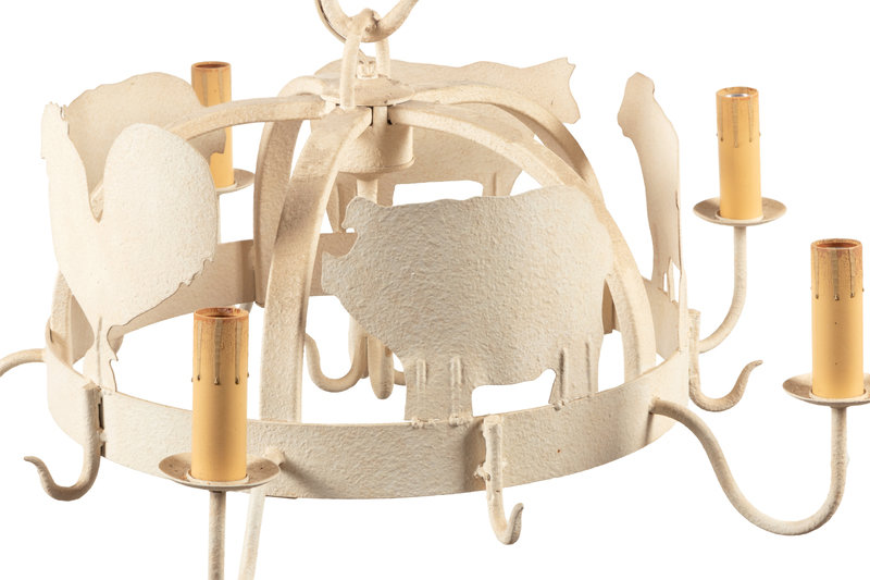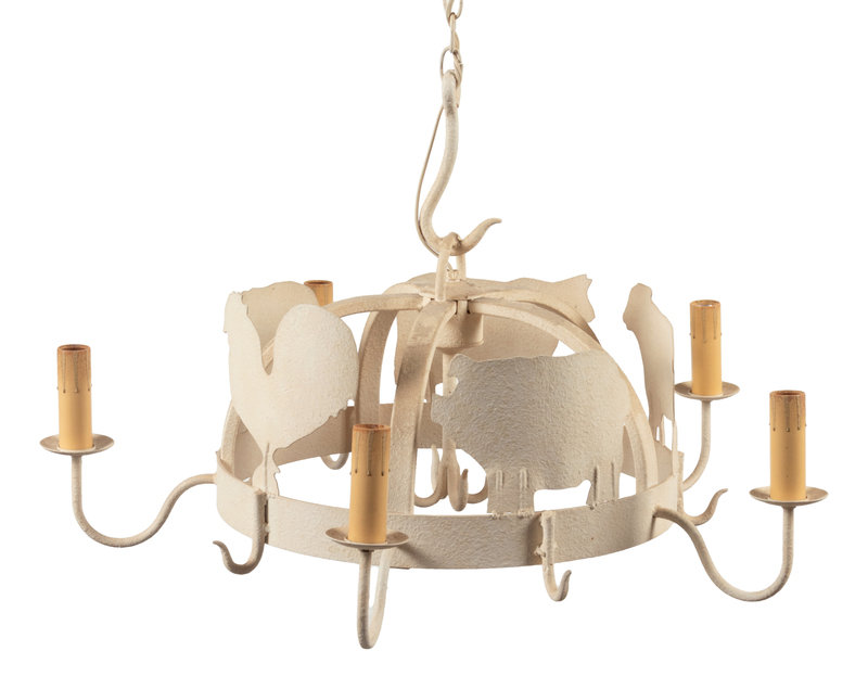 APPROVED FOR DONATION A Whimsical Painted Cut Metal Chandelier