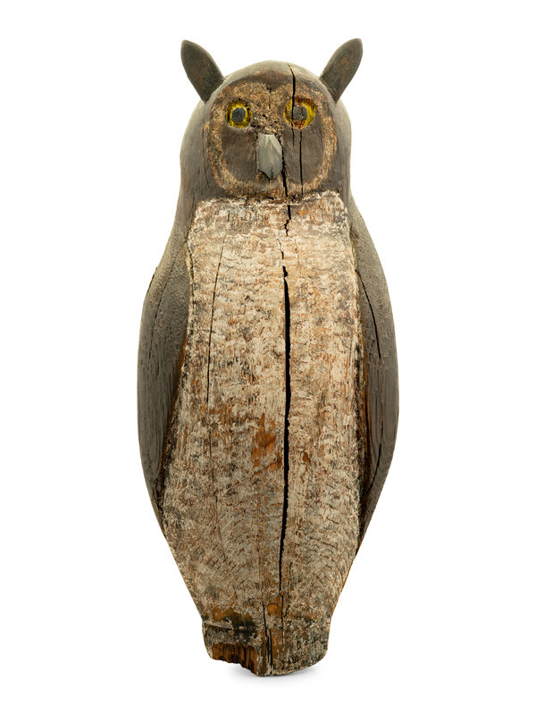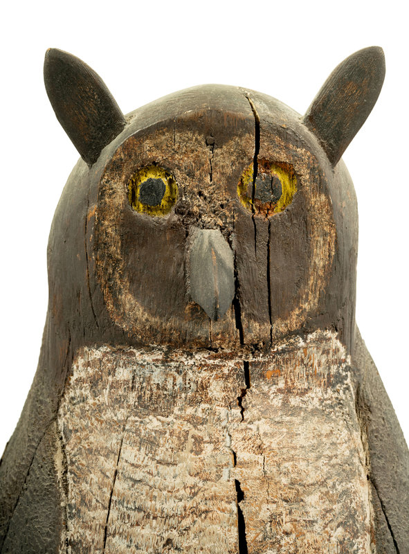 A Carved and Polychrome Decorated Wood Owl