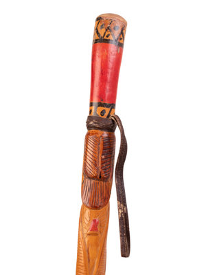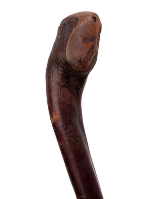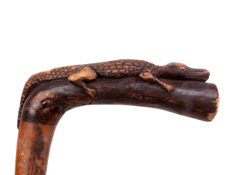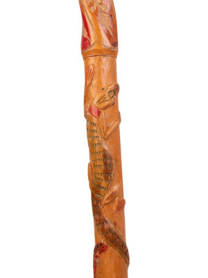 A Folk Art Snake and Alligator Carved Walking Stick