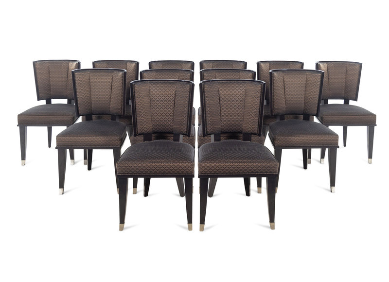 A Set of Twelve Mattaliano Art Deco Style Dining Chairs