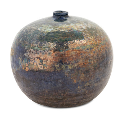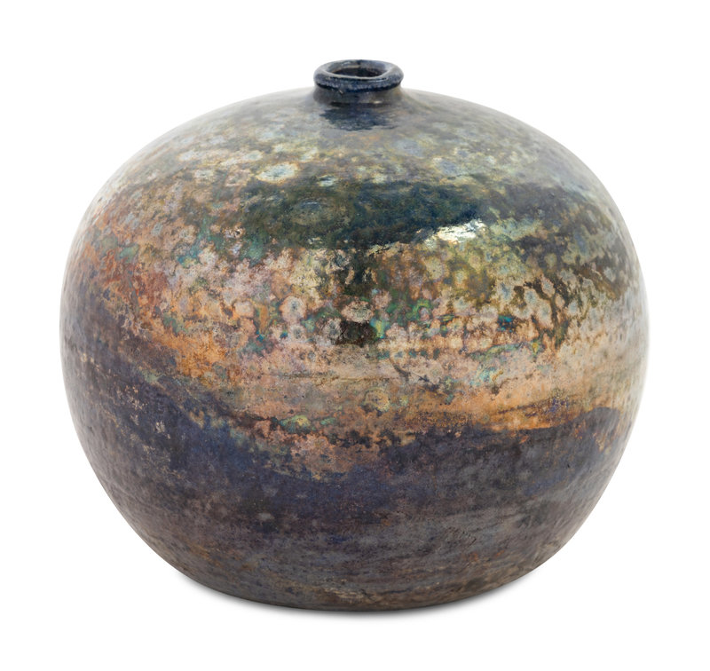 having an iridescent glaze, incised AC/BCCB and incised Vaughan to the underside.