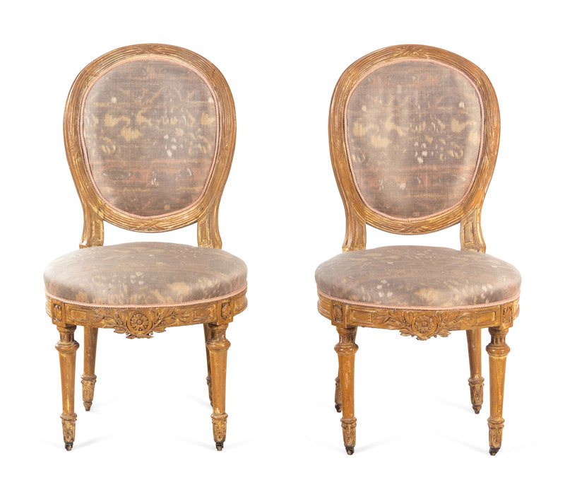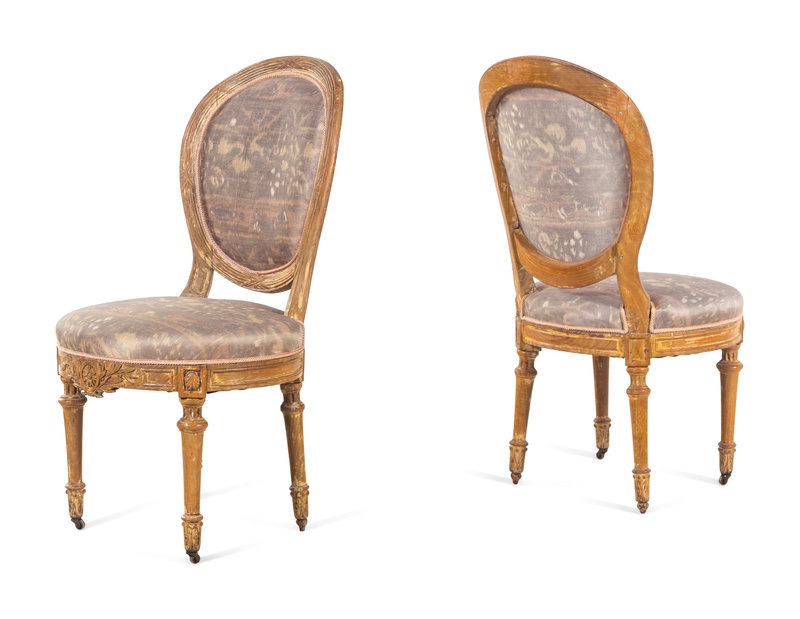A Pair of Louis XVI Cerused Wood Side Chairs