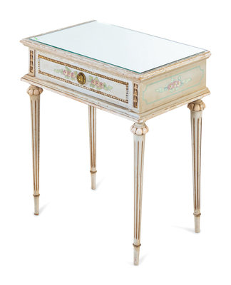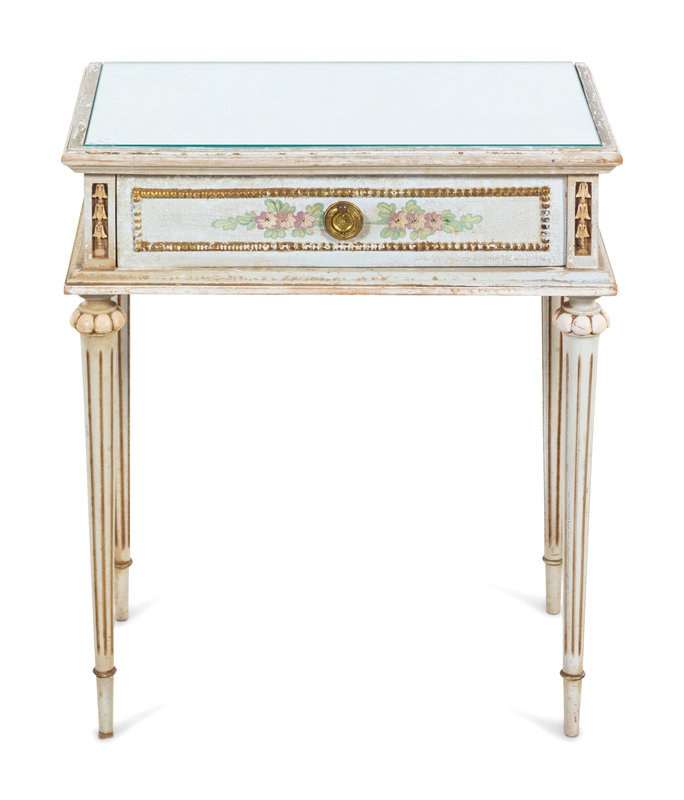 A Louis XVI Style Painted Side Table with a Mirrored Top