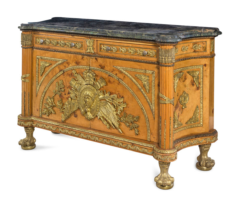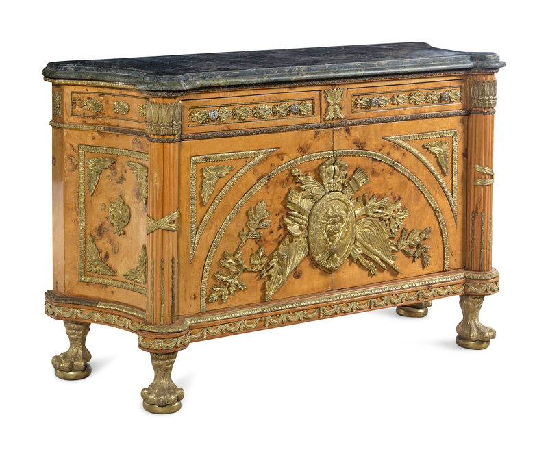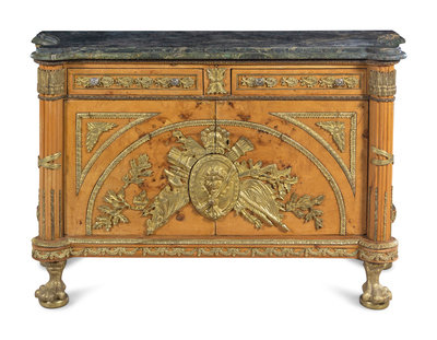 A Louis XVI Style Gilt Metal Mounted Marble-Top Commode à Vantaux After the Model by Guillaume Benneman