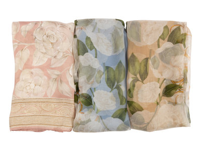This lot includes three scarves.
