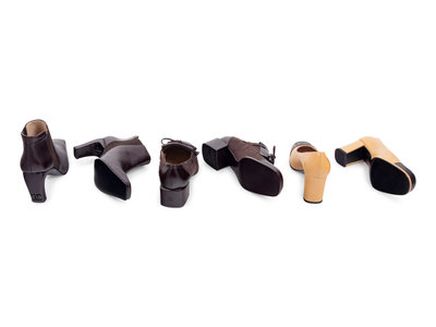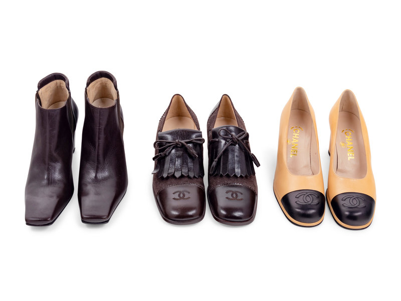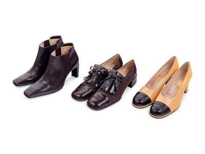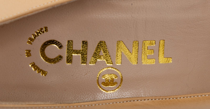 Beige and black leather toe chunky heel shoes. Found with original sales tag, listed price: $470.00. Comes with box.