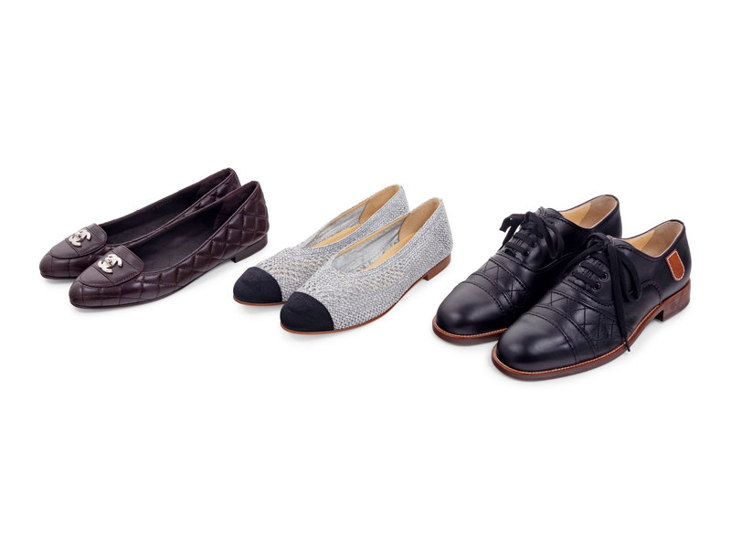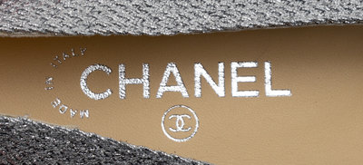 Silver thread woven ballerina flats with black fabric toes. Found with original sales tag, listed price: $700.00. Comes with dust bags and box.