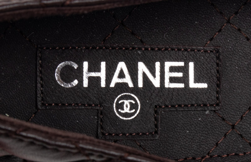 Brown quilted leather loafers with silver-tone CC logo twist lock clasp style buckle.