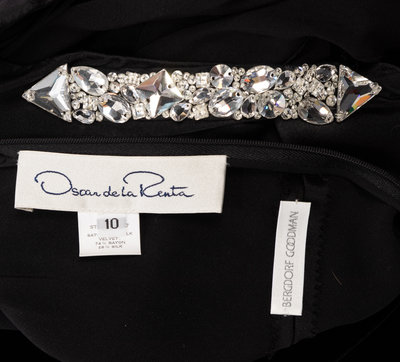 Oscar de la Renta Satin and Velvet Evening Dress with Rhinestone Straps