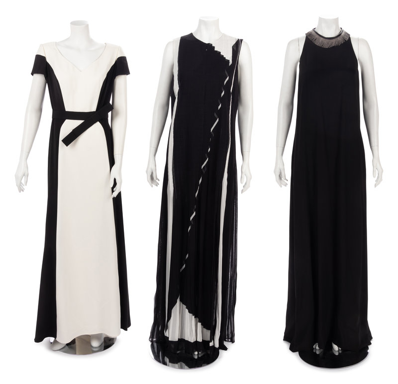 Three Designer Maxi Dresses: One Carolina Herrera, One Akris, One Brunello Cucinelli, 2015-2017