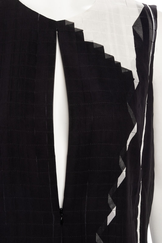 Quoted from marketing booklet included with garment: "Her [Carmen Herrera] sense of color and proportion, a blend of euphoria and perfect order, stunned me [Albert Akris]." This led to the creation of the 2017 Akris collection based on her work. Based on the art piece "Untitled" by Carmen Herrera, 1952.