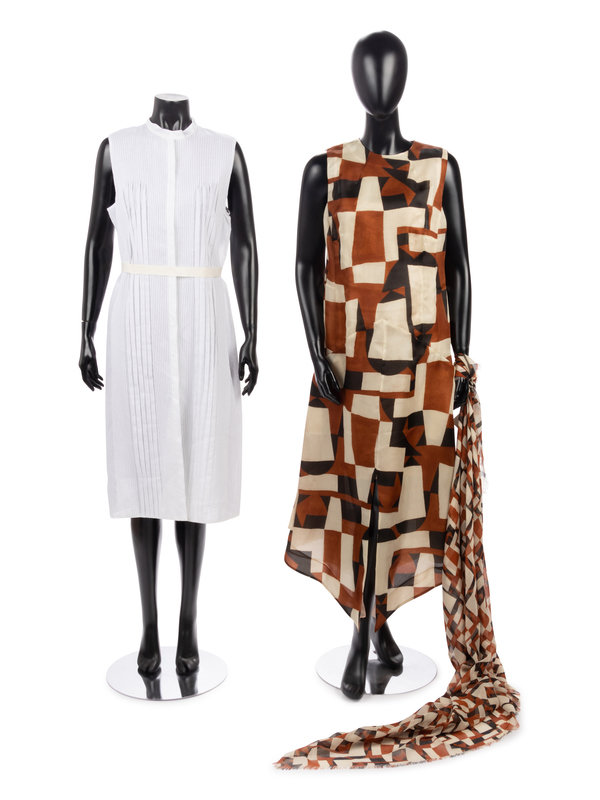 Two Designer Dresses and One Shawl: One Akris with Matching Shawl, One Calvin Klein