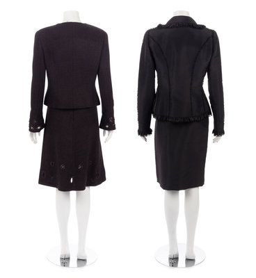 Two Two-Piece Skirt Suit Ensembles: One Chanel, One Oscar de la Renta, ca. 2000