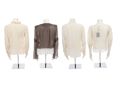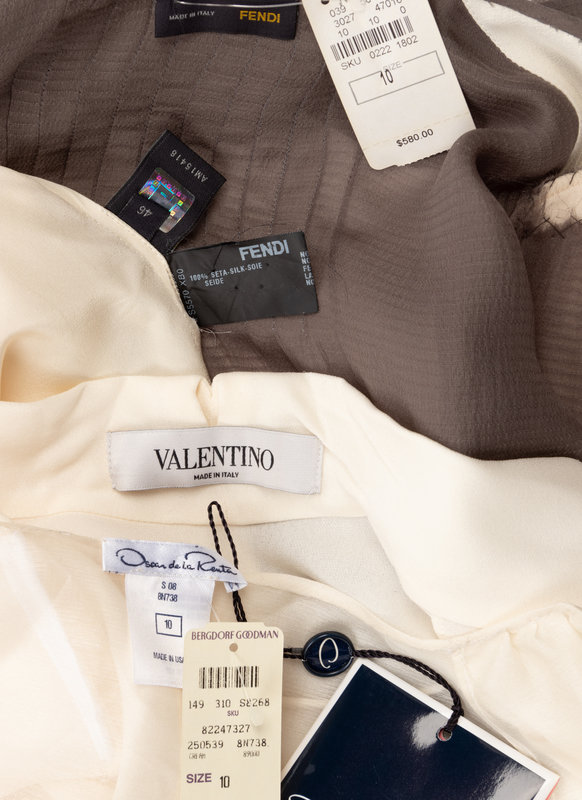 Four Designer Silk Blouses: Two Fendi, One Valentino, One Oscar de la Renta