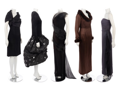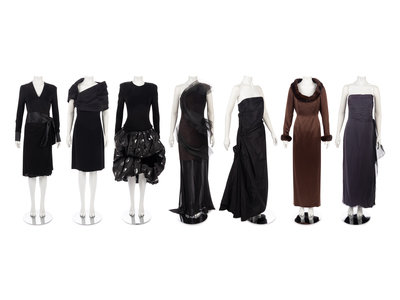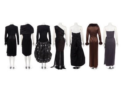 Collection of Seven Designer Evening Dresses: One Giorgio Armani, One Bill Blass, One Lawrence, One Akris, One Pamela Dennis, Two Roland Nivelais