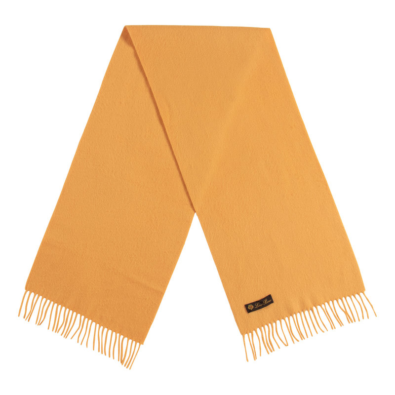 Mustard yellow cashmere scarf with fringe.