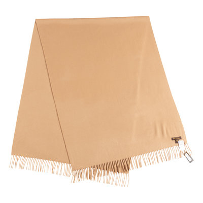 Beige cashmere scarf with fringe.