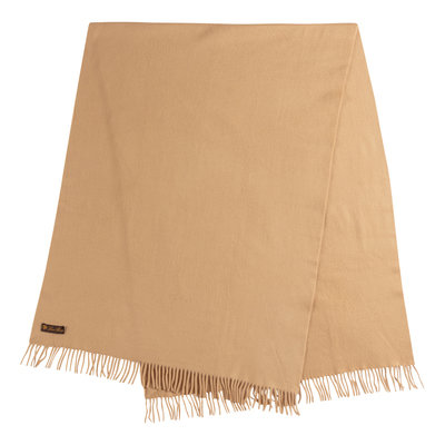 Camel cashmere scarf with fringe. Found with original sales tag, listed price is missing.