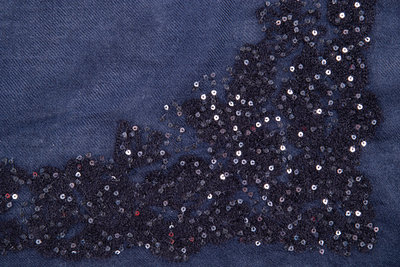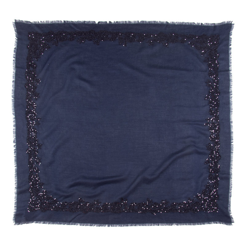 Navy cashmere and silk scarf embellished with navy sequins. Found with original sales tag.