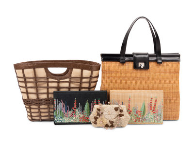 Five Designer Hand Bags: One Lambertson Truex, One Nancy Gonzalez, Two Lulu Guinness, One Valentino