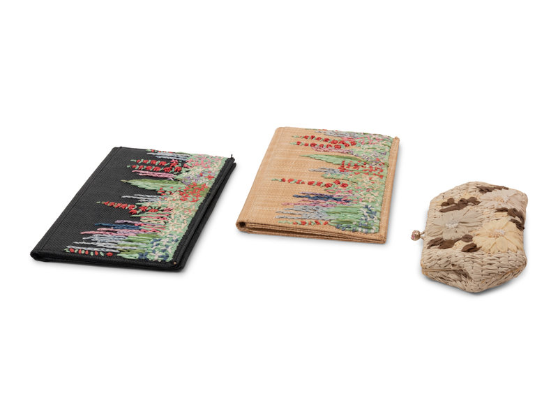 Natural straw wallet bag with multi-hued straw floral embroidery. Found with original sales tag, listed price: $450.00.