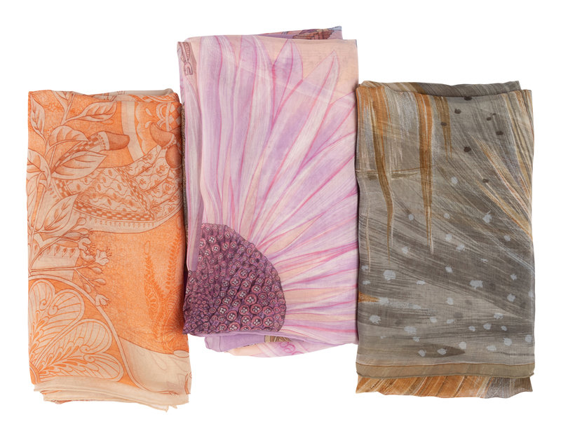 This lot includes three scarves.