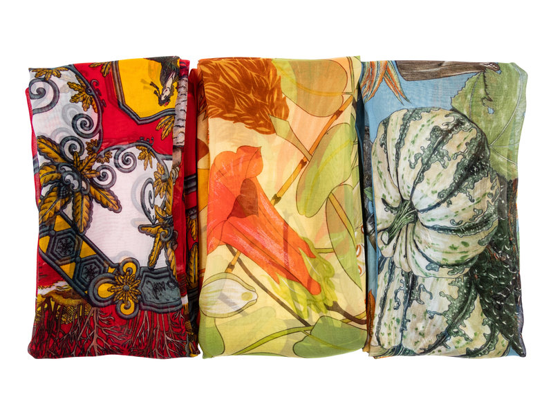 This lot includes three scarves.