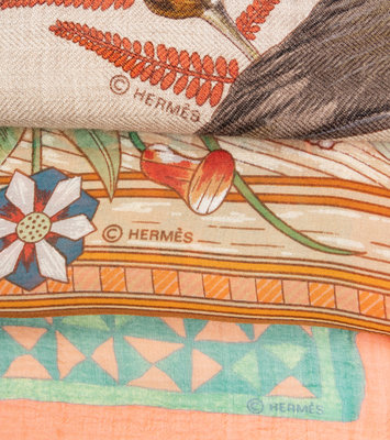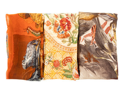 Three 90cm Hermès Scarves: Two Silk/Chiffon, One Cashmere/Silk