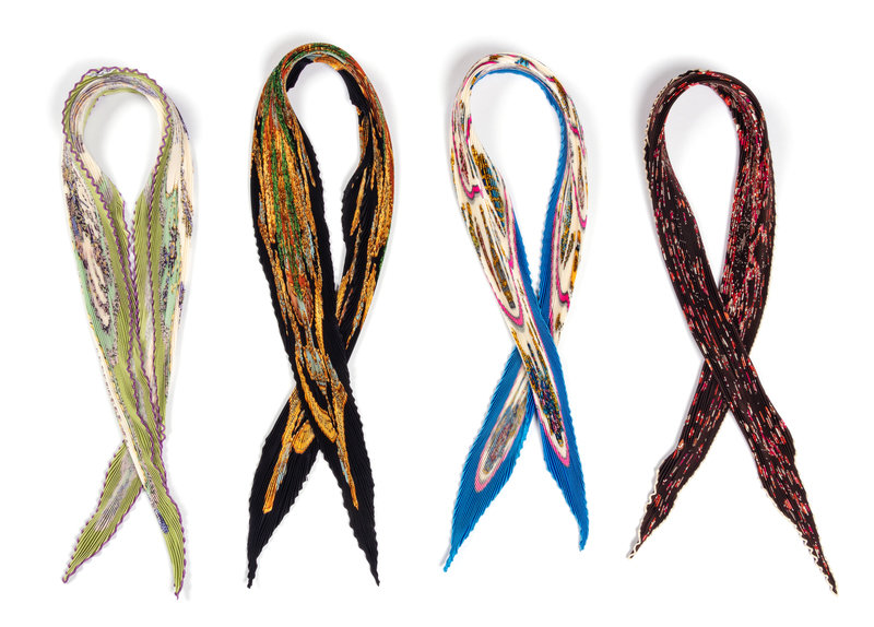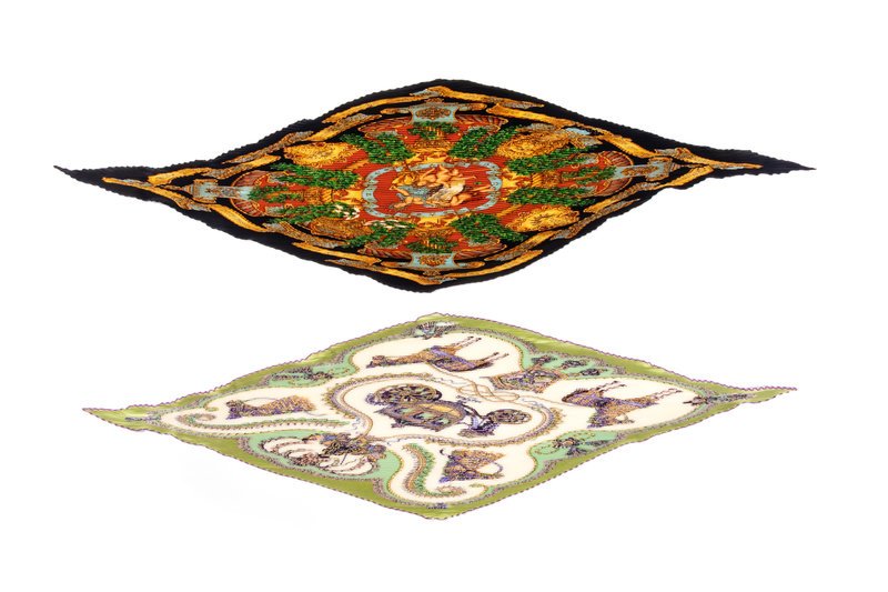 Four Hermès 90cm Pleated Silk Scarves