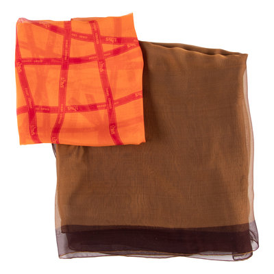 Gold and brown changeant silk chiffon with brown border.