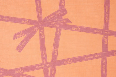 Hermès orange and red ribbon print silk chiffon scarf.