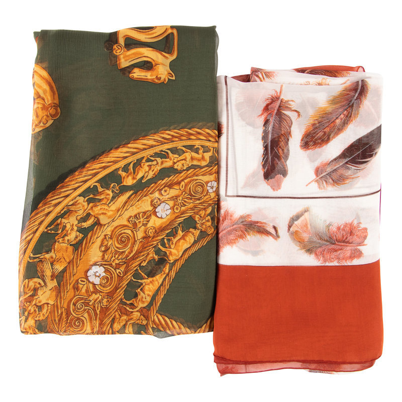 This lot includes four scarves.