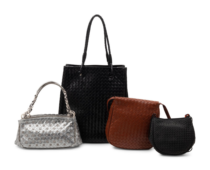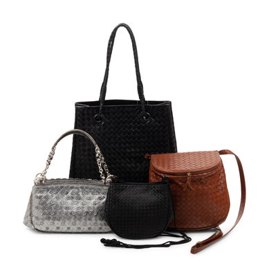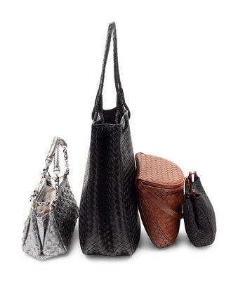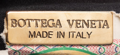 Black Intrecciato woven leather tote bag with dual woven leather handles. Found with original sales tag, listed price is missing.