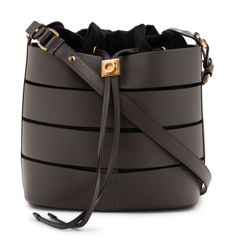 Salvatore Ferragamo Sansy Leather Cut-Out Bucket Bag, 2010s