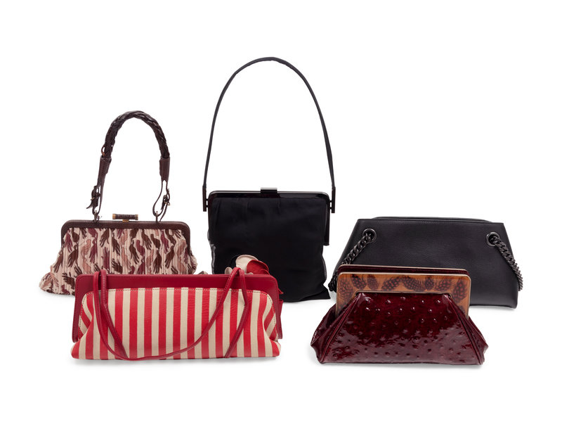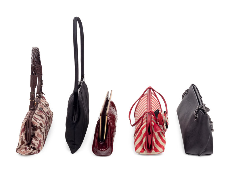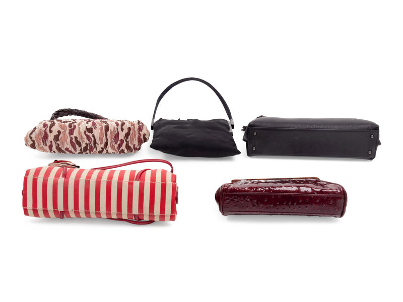 Five Assorted Designer Hand Bags: One Moschino, One Akris, One John Galliano, One Burberry, One Dolce & Gabbana