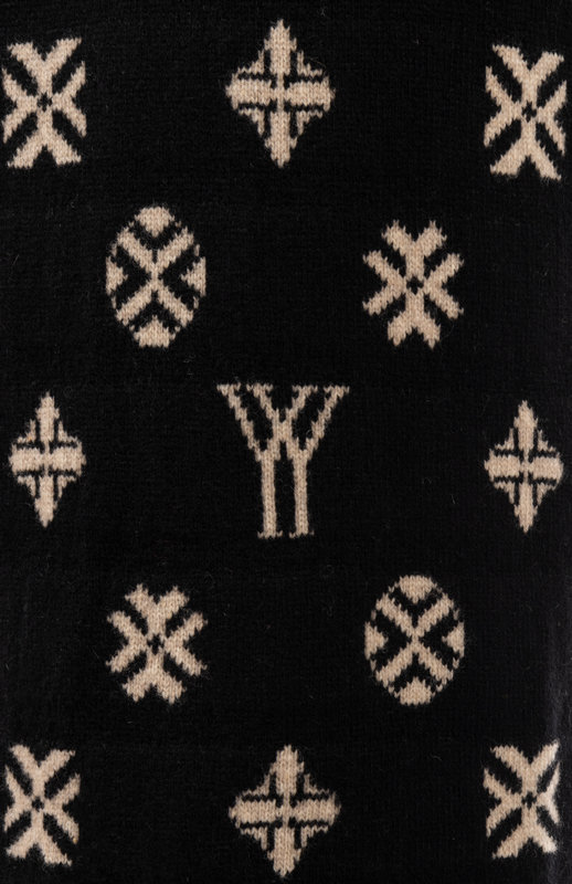 When this piece debuted in the Fall 2007 runway show, it was a departure from the classic Yamamoto and instead seemed to be more commentary on the commodification of fashion at the time, obviously taking inspiration from the "monogram" print from Louis Vuitton.