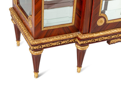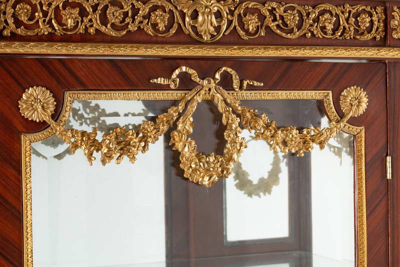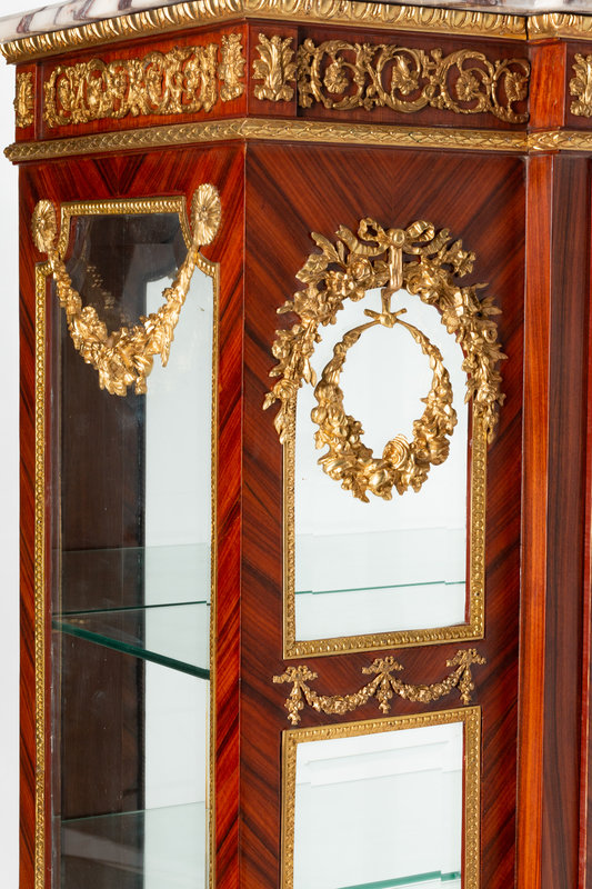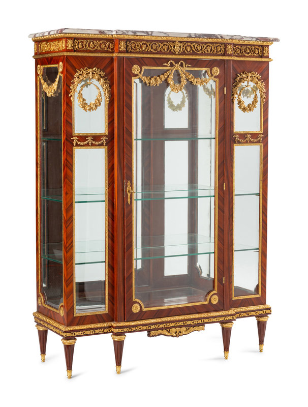 A Louis XVI Style Gilt Bronze Mounted Marble-Top Vitrine Cabinet