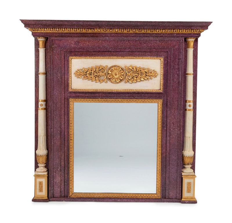A Directoire Faux Porphyry Painted and Parcel Gilt Mirror