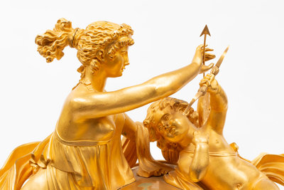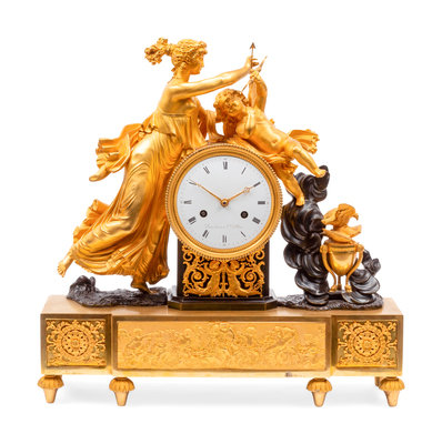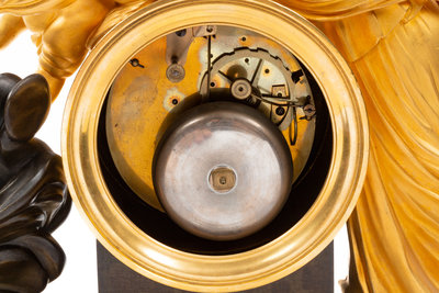An Empire Gilt and Patinated Bronze Figural Mantel Clock