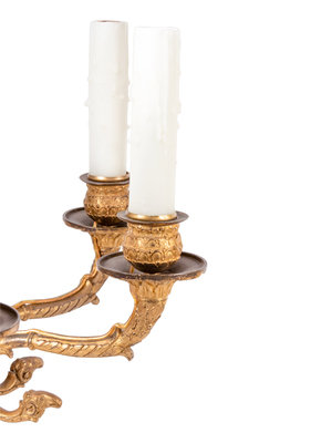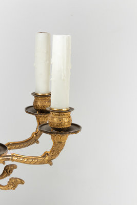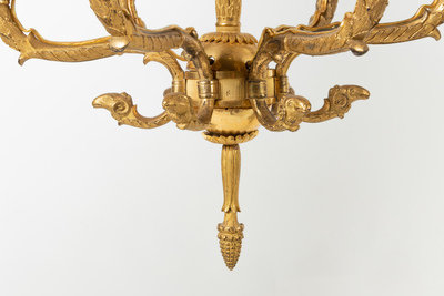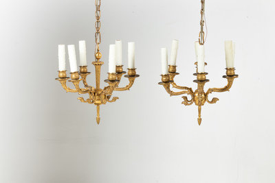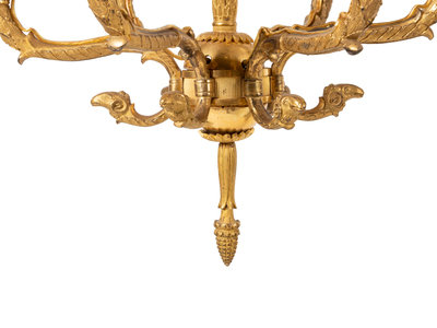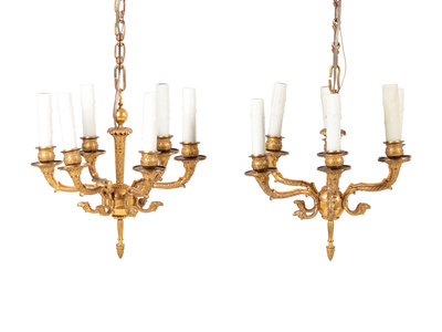 A Pair of Empire Gilt Bronze Six-Light Chandeliers