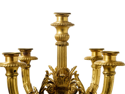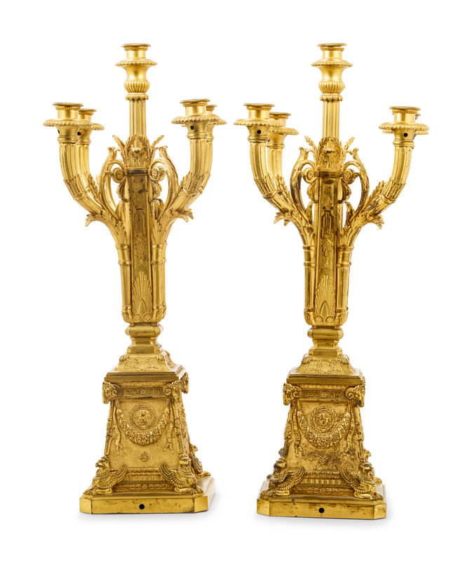 A Pair of Empire Style Gilt Bronze Five-Light Candelabra