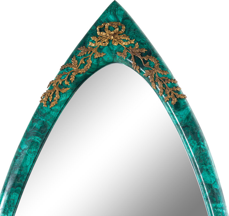 An Empire Style Gilt Metal Mounted Malachite Veneered Mirror