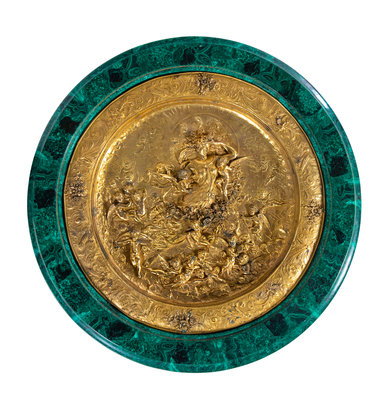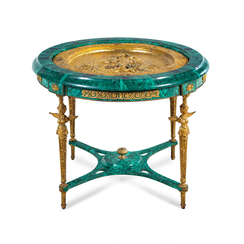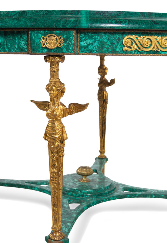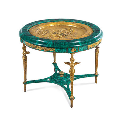 An Empire Style Gilt Bronze Mounted and Malachite Veneered Low Center Table